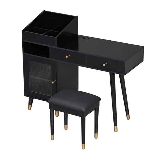 Original price $409.99 - Original price $409.99Original price$409.99$409.99 - $409.99Current price $409.99Modern Makeup Vanity Desk With Drawers Cabinet & Charging Port Engineered Wood Space Saving Design For Small Places - Black