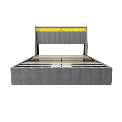 Original price $399.99 - Original price $399.99Original price$399.99$399.99 - $399.99Current price $399.99Queen Size Bed Frame With LED Lighting, Winged Headboard With Storage Drawers - Light Gray