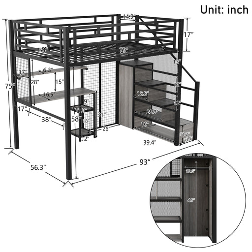 Original price $849.99 - Original price $849.99Original price$849.99$849.99 - $849.99Current price $849.99Metal Loft Bed With Wardrobe, Desk, Storage Shelves