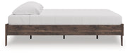 At the intersection of classic cool and chic sophistication you’ll find this king platform bed. The rich brown finish over replicated walnut wood grain offers an authentic touch that plays well any way you style it. Minimal yet elegant in its design, this bed keeps your home decor grounded while elevating your modern style.