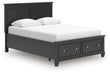 Details | Includes panel headboard, storage footboard with roll slats and rails , Made with hardwood solids, birch veneer and MDF substrate, Side rails feature laminated solid hardwood slat support rails (or LVL) with glued and screwed blocking for added strength, Black painted finish, Round metal drawer knobs with satin nickel-tone finish, 2 smooth-gliding drawers with ball-bearing side glides in footboard, Tapered feet, Bed does not require additional foundation/box spring; accommodates most zero clearance adjustable bases with the addition of a bunkie board, Mattress available, sold separately, Assembly required | |