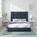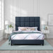 Queen Size Squares Upholstered Platform Bed - Navy Blue Denim