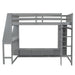 Full Size Gaming Loft Bed With Desk, Multi Storage Shelves, LED Lighting, And Hanging Clothes Rack - Gray