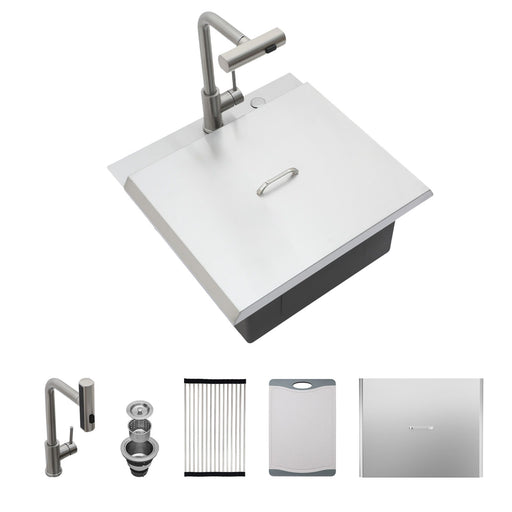 Original price $479.99Original price $479.99 - Original price $479.99Original price $479.99Current price $419.99$419.99 - $419.99Current price $419.9921" Drop In Kitchen Sink With Pull Out Faucet And Sink Cover, 16 Gauge - Brushed Nickel