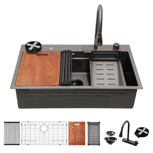 Original price $659.99Original price $659.99 - Original price $659.99Original price $659.99Current price $579.99$579.99 - $579.99Current price $579.9930" Whale Digital Waterfall Sink With LED Display, 16 Gauge Single Bowl Ledge Workstation - Gunmetal Black