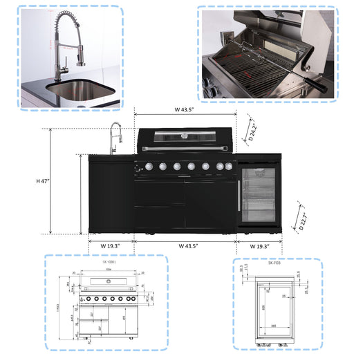 Original price $10,959.99Original price $10,959.99 - Original price $10,959.99Original price $10,959.99Current price $8,849.99$8,849.99 - $8,849.99Current price $8,849.996 Burner 85, 000 Btu Outdoor Kitchen Island Grill With Wine Cooler Refrigerator, Rotisserie Kit, Granite Countertops & Sink - Black