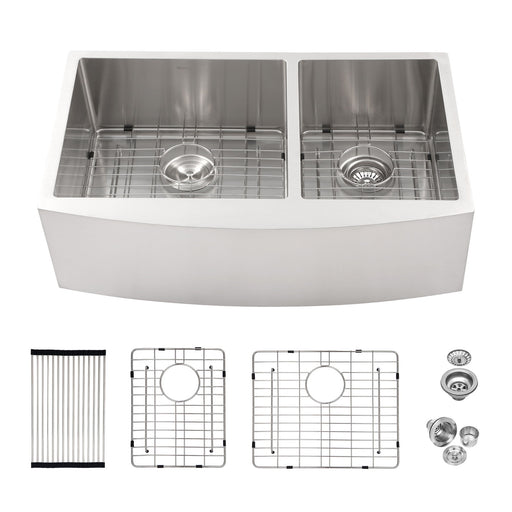 Original price $719.99Original price $719.99 - Original price $719.99Original price $719.99Current price $589.99$589.99 - $589.99Current price $589.99Double Bowl Farmhouse Sink, Stainless Steel Apron Front Kitchen Sink 16 Gauge - Brushed Nickel