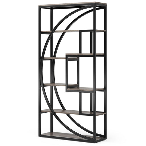 Home EssentialsSleek Geometric Design: Modern half-moon silhouette with metal frame and vintage gray shelves enhances any room's visual appeal. Ample 8-Shelf Sto...