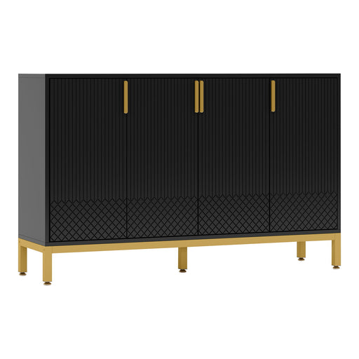 Home EssentialsLuxury Modern Design: Sleek finish with handles and geometric striped doors for a sophisticated, high-end look Spacious Storage Solution: Four-doo...