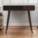- Curved Writing Desk - Introducing our stylish Writing Desk, crafted from solid mango wood. It's sustainably sourced and comes in a beautiful finish. With one open slot and one drawer, it helps keep your space tidy. One shiny brass knob and and four Nordic-style legs add a touch of elegance. Perfect for work or study, this desk is a functional and attractive addition to your home or office.