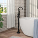 Freestanding Bathtub Faucet Floor Mount Tub Filler With Swivel Gooseneck Spout And Cylinder Handheld