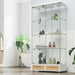 Glass Display Cabinet With LED Lights, Tempered Glass Doors, Large Drawers, 2 Door Storage Case With 4 Shelves - Natural / White