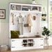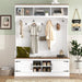 Hall Tree With Bench And Shoe Storage, 5 In 1 Entryway Organizer Cabinet With Coat Rack, 4 Shoe Cubbies & 7 Hooks - White