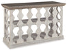 With its richly rustic finish and textural mix, this sofa table goes to town on bygone beauty. Its distressed two-tone treatment blends a weathered gray with vintage white for an utterly charming effect. Balustrade-style planks supporting the top create an eye-catching look that’s anything but ordinary.