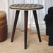 - Artisan Furniture Solid Wood Bone Inlay Tripod Stool With Honey Caramel Finish - This little tripod stool is a sturdy yet light enough piece to move around easily. It has a nice smooth honey caramel finish constructed from 100% solid mango wood with a beautiful bone inlay top. Out of abundance of precaution, we wouldnt recommend using the stool as a sitting space. The bone inlay is sourced responsibly from deceased animals such as camels, goats and buffaloes. Avoid placing your furniture under direct sunlight and/or near radiators. Also, occasionally polish the non-painted furniture parts with bees wax to retain sheen and for longer lifespan.