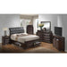 - Wood Sleigh Bed: The wood sleigh bed in this collection uses wood veneers for a stylish design