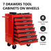 Rolling Metal Tool Chest With 7 Drawers, Steel Storage Cabinet With Ball Bearing Slides - Black / Red