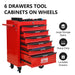 Rolling Metal Tool Chest With 6 Drawers, 20" Steel Storage Cabinet With Ball Bearing Slides - Black / Red