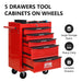 Rolling Metal Tool Chest With 5 Drawers, 20" Steel Storage Cabinet With Ball Bearing Slides - Black / Red