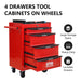 Rolling Metal Tool Chest With 4 Drawers, 20" Steel Storage Cabinet With Ball Bearing Slides - Black / Red