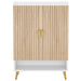 - Elegant Design: Combines finish with wood accents and gold metal details for a modern, inviting look