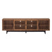 - Organized Entertainment Hub: Slatted cabinet doors offer concealed storage, combining visual texture with ample space to manage media and accessories.