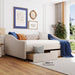 Full Size Upholstered Daybed With Two Drawers, Slat Support - Beige