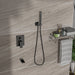 Wall Mounted Square Shower System With Rainfall Tub Spout And Handheld Shower, 10" - Matte Black