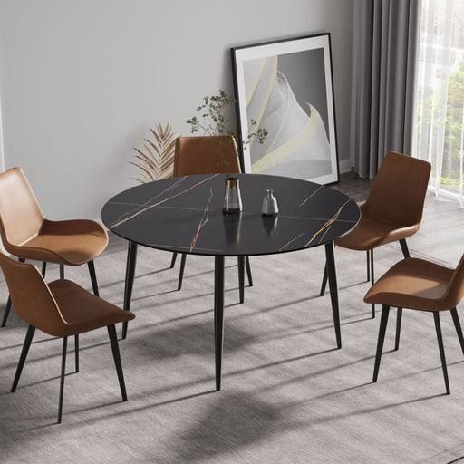Original price $879.99 - Original price $879.99Original price$879.99$879.99 - $879.99Current price $879.99Modern Artificial Stone Round Dining Table With Metal Legs, Can Accommodate 6 People - Black