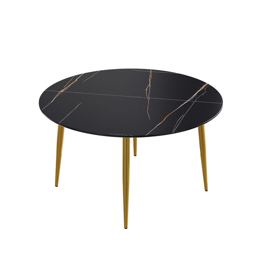 Home EssentialsElegant Design: The black round tabletop with golden metal legs creates a stunning focal point in any dining room. Durable Surface: Made from sint...