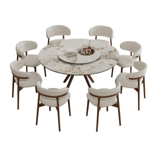 Home EssentialsSintered Stone Dining Table: Elegant design, scratch-resistant, wear-resistant, and heat-resistant surface. Unique Base Design: Sturdy wooden fram...
