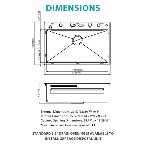 Original price $799.99 - Original price $799.99Original price$799.99$799.99 - $799.99Current price $799.9930" Single Bowl Kitchen Sink With Smart LED Faucet