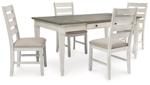 Signature Design by Ashley®Consumer's ChoiceThis 5-piece dining set serves up the best in rustic farmhouse living. The extension dining table's two-tone distressed finish pairs a brown tablet...