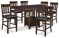 Details | D596-42: Made of veneers, wood and engineered wood, Separate extension leaf, Table extends by pulling both ends and dropping in leaf, Seats up to 6, Assembly required, Bar stools available, sold separately, D596-124: Made of veneers, wood and engineered wood, Vinyl upholstery, Cushioned seat, Slat back design, | |