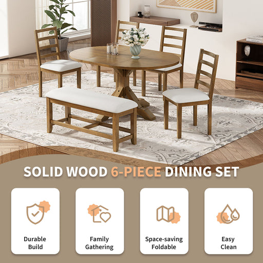 Original price $1,459.99 - Original price $1,459.99Original price$1,459.99$1,459.99 - $1,459.99Current price $1,459.99Topmax - 6 Piece Farmhouse Extendable Pedestal Dining Table Set With 18Inch Removable Leaf, Bench And 4 Ladder Back Dining Chairs