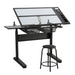 Hand Crank Adjustable Drafting Table Drawing Desk With 2 Metal Drawers With Stool - Black