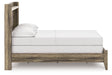 Details Includes panel headboard, footboard and rails, Made with engineered wood (MDF/particleboard/plywood) and decorative laminate for the right balance of affordability and durability , Weathered brown finish over replicated oak grain with authentic touch , Decorative laminate replicates natural or man-made material surfaces with consistent color, pattern and texture , Dimming LED light under headboard shelf, Power cord included; UL listed, Foundation/box spring required, sold separately, Mattress available, sold separately, Assembly required
