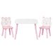 Table And Chair Set, 3 Piece Wooden Toddler Desk With Animal Backrest - Pink / White
