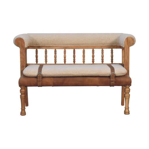 Artisan FurnitureBoucle Buffalo Hide Leather Bench - Derived from the French word for curled or ringed yarn or fabric. This handwoven upholstered furniture piece i...