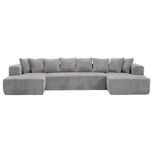 Home EssentialsSpacious Wale Corduroy Sofa: Features a luxurious striped fabric with an elegant, contemporary U-shaped design. Adds timeless sophistication and b...
