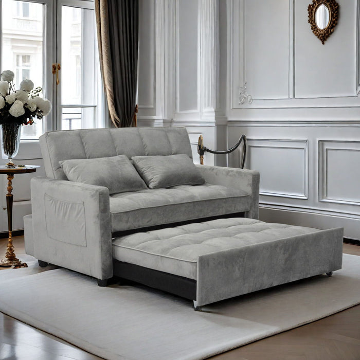 Modern Velvet Loveseat Futon Sofa Couch Pullout Bed, 55.33" Love Seat Lounge Sofa Bed, Armrest With Three USB Ports, Two Side Pockets, Two Cup Holders And 360 DegreeSwivel Phone Holder For Living Room - Gray