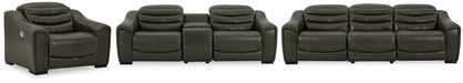 Details | U63404S5: Includes 3 pieces: left-arm facing power recliner, armless chair and right-arm facing power recliner, "Left-arm" and "right-arm" describe the position of the arm when you face the piece, One-touch power control with adjustable positions, Easy View™ adjustable headrest and zero-draw USB port, Zero-draw technology only consumes power when the USB receptacle is in use, Corner-blocked frame with metal reinforced seat, Attached cushions, High-quality foam cushions wrapped in poly fiber, 100% top grain leather covers inside areas such as the back, seat and arm cushions; skillfully matched faux leather covers the remaining areas, Due to its natural origin, real leather can show individual characteristics such as healed scars, growth marks, grain variation and shade variation, Natural variations make each hide unique and do not detract from the wearing qualities of leather, Zero wall recliner design requires minimal space between wall and chair back, Power cord included; UL Listed, U63404S2: Includes 3 pieces: left-arm facing power recliner, console with storage and right-arm facing power recliner, "Left-arm" and "right-arm" describe the position of the arm when you face the piece, One-touch power control with adjustable positions, Easy View™ adjustable headrest and zero-draw USB port, Zero-draw technology only consumes power when the USB receptacle is in use, Corner-blocked frame with metal reinforced seat, Attached cushions, High-quality foam cushions wrapped in poly fiber, 100% top grain leather covers inside areas such as the back, seat and arm cushions; skillfully matched faux leather covers the remaining areas, Due to its natural origin, real leather can show individual characteristics such as healed scars, growth marks, grain variation and shade variation, Natural variations make each hide unique and do not detract from the wearing qualities of leather, Console with 2 cup holders, hidden storage, dual 110V outlets and dual USB charging ports, Zero wall recliner design requires minimal space between wall and chair back, Power cord included; UL Listed, U6340413: One-touch power control with adjustable positions, Easy View™ adjustable headrest and zero-draw USB port, Zero-draw technology only consumes power when the USB receptacle is in use, Zero-gravity mechanism (raises the ottoman to improve circulation), Corner-blocked frame with metal reinforced seat, Attached cushions, High-quality foam cushions wrapped in poly fiber, 100% top grain leather covers inside areas such as the back, seat and arm cushions; skillfully matched faux leather covers the remaining areas, Due to its natural origin, real leather can show individual characteristics such as healed scars, growth marks, grain variation and shade variation, Natural variations make each hide unique and do not detract from the wearing qualities of leather, Power cord included; UL Listed, | |