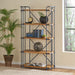 Yorktown - Industrial 5 Shelf Bookcase With Metal Pipework And Solid Fir - Natural