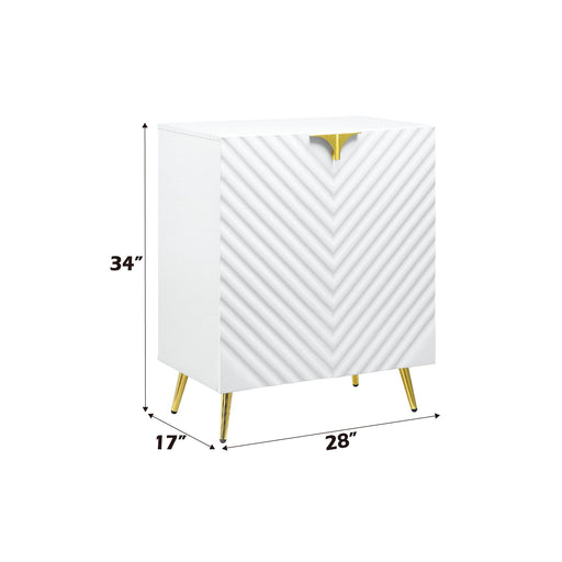 AcmeElegant Design: The Gaines White High Gloss Finish Console Cabinet features a sleek wave pattern design with a fully KD structure, providing a ...
