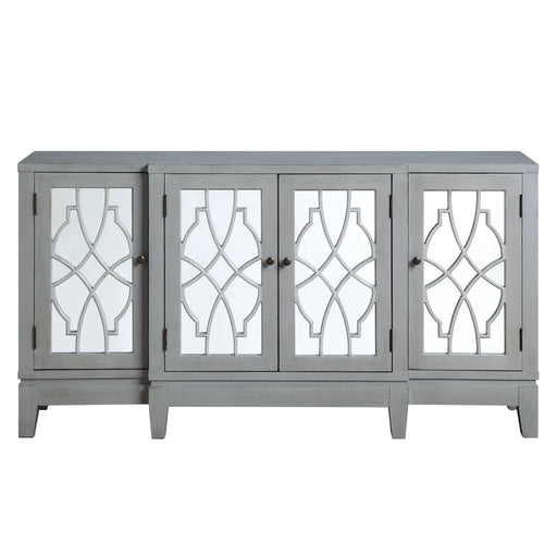 AcmeDesign Features: The Magdi Antique Gray Finish Console Cabinet boasts a stylish design with 4 mirror-front doors and patterned detailing. It stan...