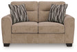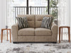 Strike a balance between the indulgent comfort you crave and the contemporary aesthetic you long for. The fabulously soft, mocha-colored upholstery of this loveseat takes neutrals to new heights. Plus there's plenty of room to spread out and relax solo or with your bestie. Geometric-patterned accent pillows perfect the richly on-trend aesthetic.