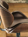 Style takes quite a modern turn. Sporting a distinctively contoured back and seat design, this upholstered swivel bar stool is sure to bring an elevated look to your living space. Wrapped in a brown faux leather upholstery, the seating area’s artful contours are accentuated with a faux wood finish.