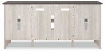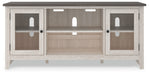 With its two-tone finish and minimalist charm, this TV stand with fireplace option is right in tune with your relaxed approach to high style. Beautifully made to accommodate your media equipment, it’s well equipped with adjustable shelving, cutouts for wire management and a pair of glass-front doors that enhance the clean-lined aesthetic. The look is ideal for modern farmhouse and contemporary settings.