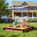 Kids Sandbox With Cover, Sand Box With Adjustable Canopy, Large Outdoor Cedar Sandpit For Backyard Play - Reddish Brown