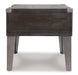 Take a stance for rustic-industrial style with this mixed material end table. Weather-washed pine wood and veneers are contrasted with canted metal legs and corner bracket accents for a uniquely chic merger of earthy beauty and contemporary flair. Power plug-ins and USB charging ports mounted on the back add practical function to great form.